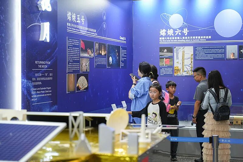 在西博城,第二十一届世界线动漫展首日便接待4万人次入场,彰显成都“动漫之城”的崛起。在四川科技馆,“九天揽月——中国探月工程20年”数字文创展重磅集结诸多珍贵航天展品,吸引了许多家庭和硬科技爱好者前来体验。