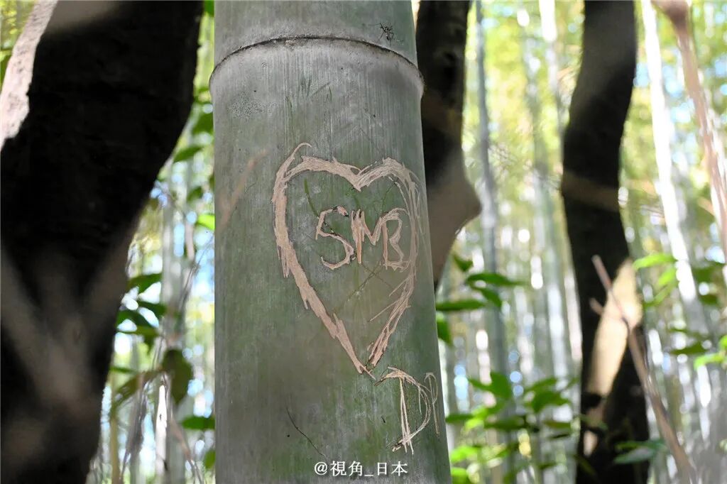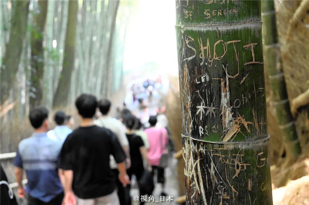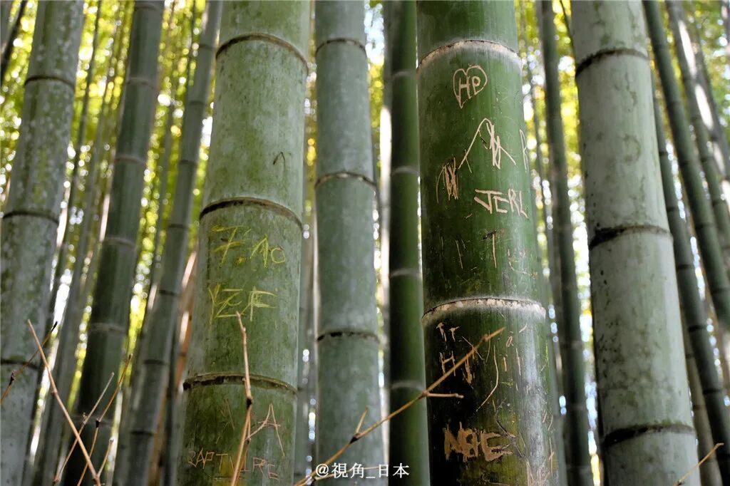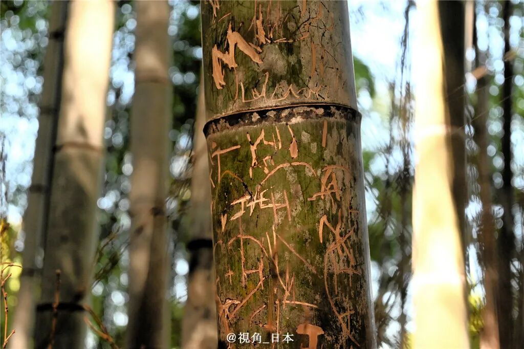 10月6日,京都市对位于岚山的人气景点「竹林小径」的约7千株竹子实施了调查,结果发现约350株存在被小刀或钥匙类的物品刻画过的痕迹。其中大部分内容为英文字母,也存在极个别日文片假名、汉字、韩文等文字。