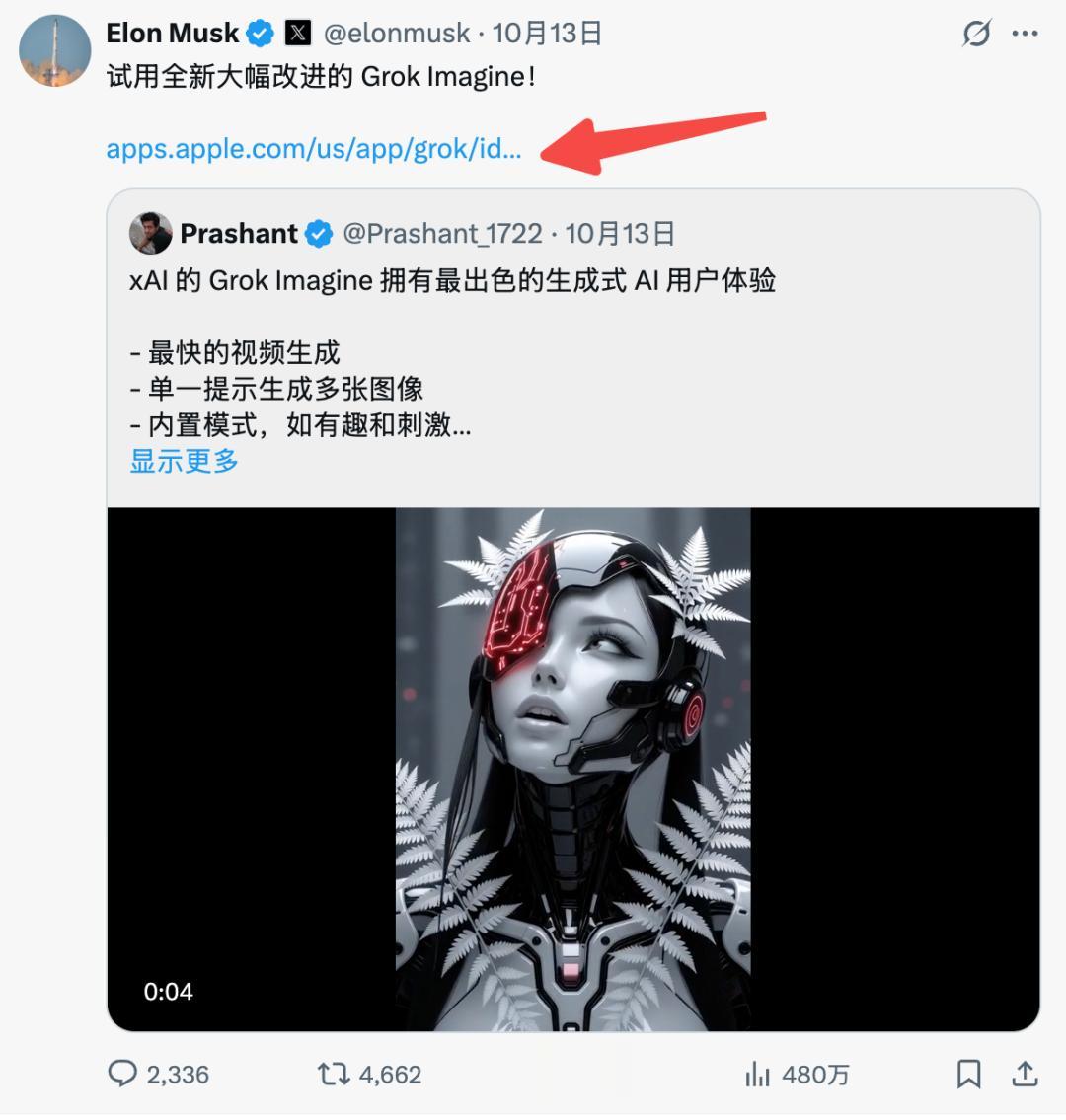 都知道X上挂链接是会降权的,但是马斯克还是给每次推荐机会都挂上苹果App Store的链接,意思很简单,「你们快去下载Grok啊~」