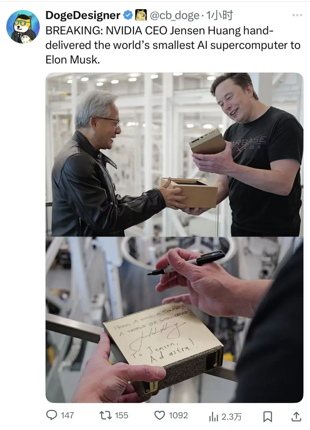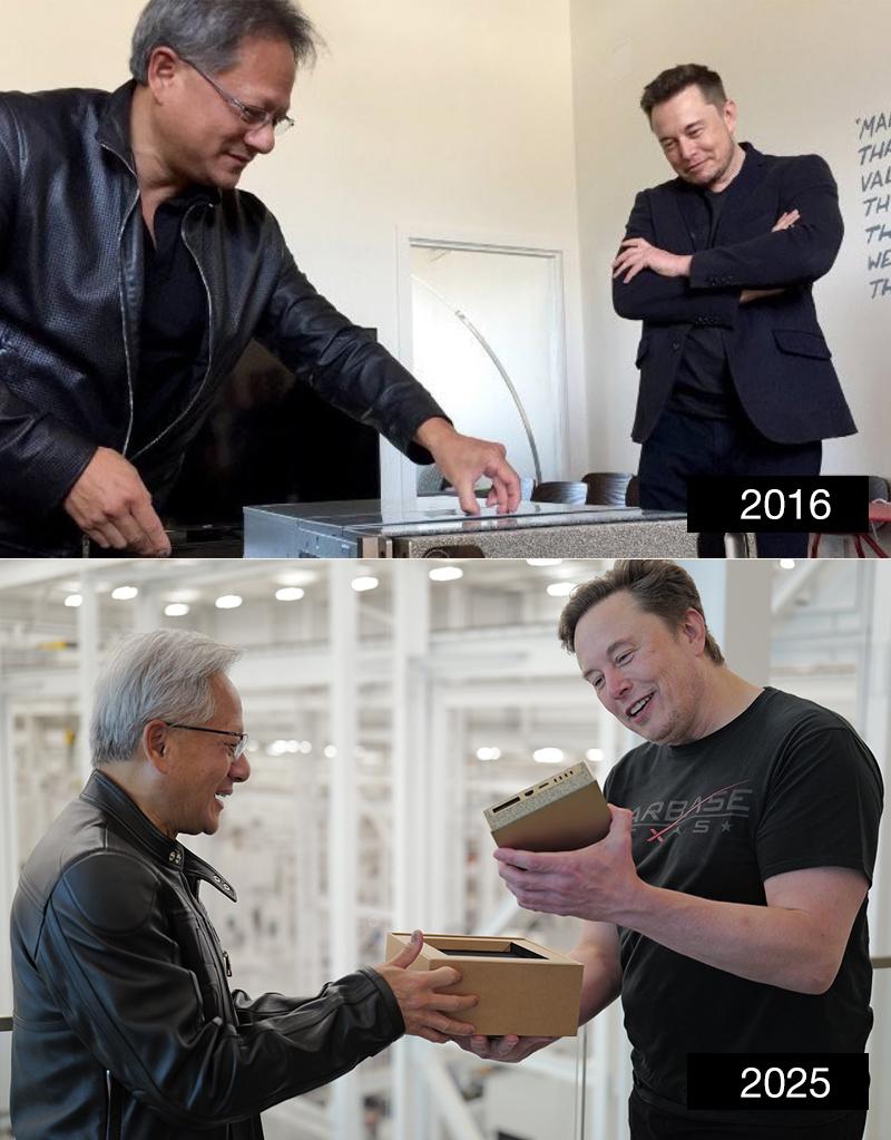 毕竟当年2016年,黄仁勋也是向马斯克交付了第一款为人工智能优化的GPU。