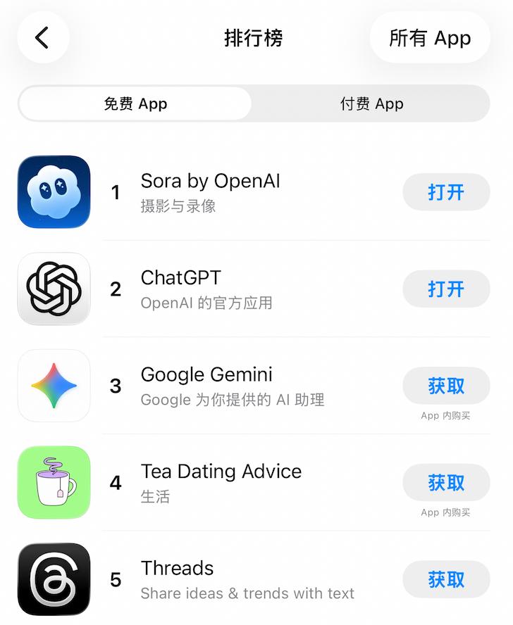 在国庆期间,OpenAI推出Sora新版本后,立马登上App Store的榜单!