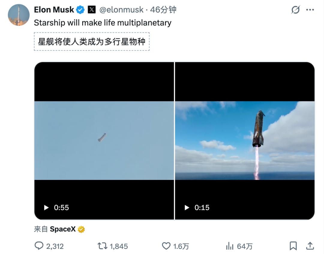 比如最近的星舰测试。