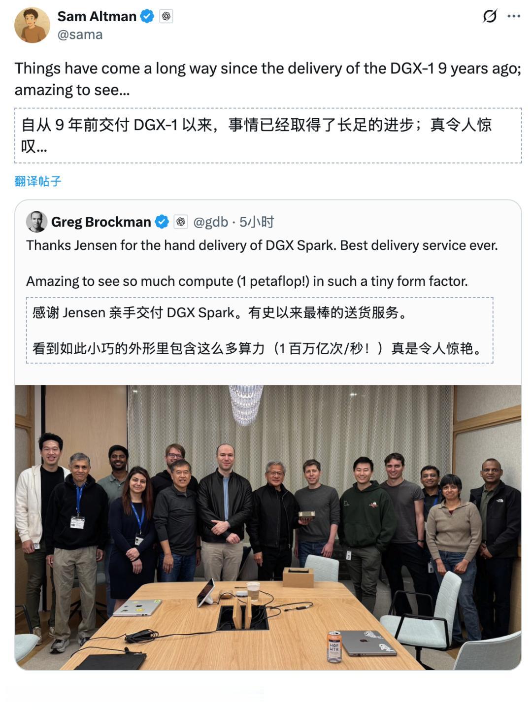 然后今天老黄就跑去OpenAI总部了。