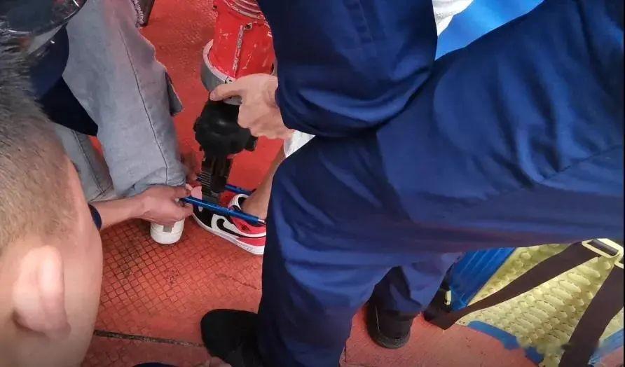 广西南宁的消防员也曾接待过两个同样“造型”的女子。两人在玩网红游戏“生死局”时,将双脚锁住却找不到钥匙,只好来找消防员帮忙。